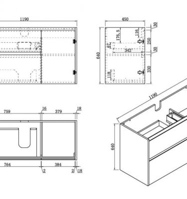 Caliber Series VMF1200DR WGE Wall Hung Measurement: 1190mm(Width) x 450mm(Depth) x 640mm(Height) (+/- 3mm tolerance) Mix & Match Cabinet WENGE melamine