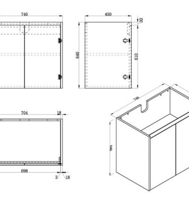 Caliber Series VMF750DR WGE Wall Hung Measurement: 740mm(Width) x 450mm(Depth) x 640mm(Height) (+/- 3mm tolerance) Mix & Match Cabinet WENGE melamine