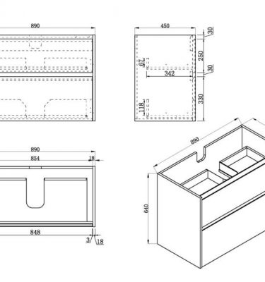 Caliber Series VMF900DW WHT Wall Hung Measurement: 890mm(Width) x 454mm(Depth) x 640mm(Height) (+/- 3mm tolerance) Mix & Match Cabinet Gloss White finish