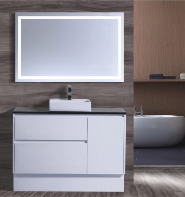 Caliber Series VMF1200DR WHT Free Standing Measurement: 1190mm(Width) x 450mm(Depth) x 840mm(Height) (+/- 3mm tolerance) Mix & Match Cabinet Gloss White finish Stone