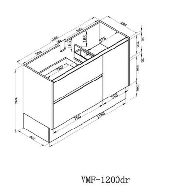Caliber Series VMF1200DR OAK Free Standing Measurement: 1190mm(Width) x 450mm(Depth) x 840mm(Height) (+/- 3mm tolerance) Mix & Match Cabinet OAK melamine