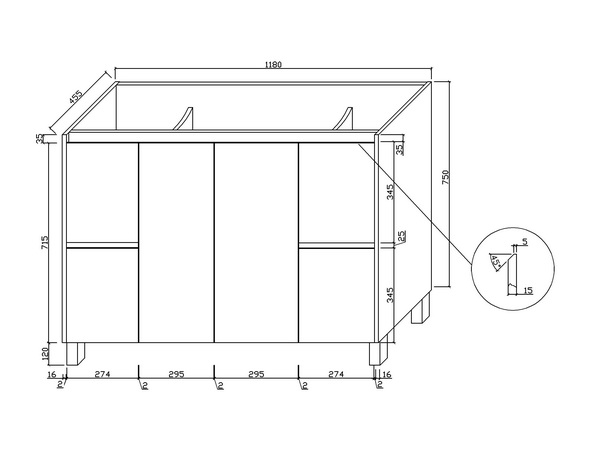 Newport 1200-4D Free Standing White poly 2 pack 45° finger pull Soft closing (4 Drawers) Legs or kickers Dimensions: Width: 1180mm